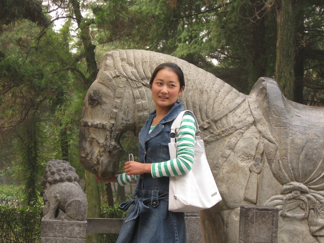 A Visit to the White Horse Temple — Indian Buddhists brought Buddhism here (riding on white hourses) in 67AD, Lijuan and little friend on stone horses